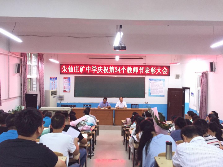 为庆祝教师节,表彰优秀,充分发挥骨干教师的引领作用,9月10日下午,朱仙庄矿中学在阶梯教室举行第34个教师节表彰大会,授予10名同志“优秀教师”称号,8名同志“优秀班主任”称号。 会上,赵?、田丽梅代表获奖教师分别发言,他们纷纷表示今后将以更加饱满的热情投入到教育教学中,力争取得更加优异的成绩。最后,雷向阳校长对获奖教师表示热烈的祝贺,并希望他们以身作则,率先垂范,积极推动课堂改革,创新教育理念,为矿中发展做出新的贡献。